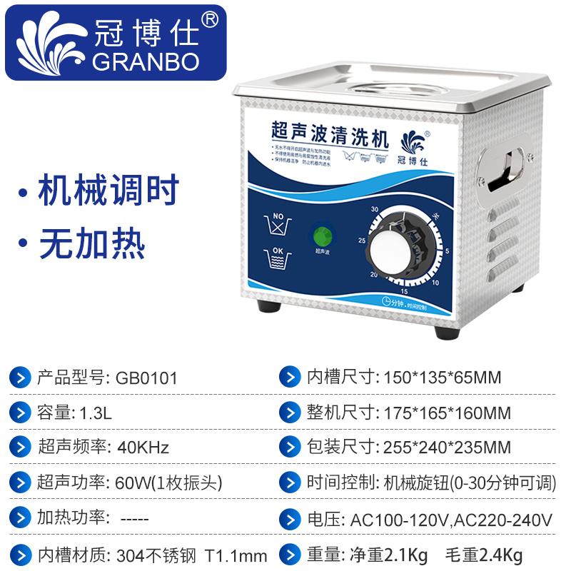 冠博仕GB0101超聲波清洗機|1.3L/60W|機械定時無加熱