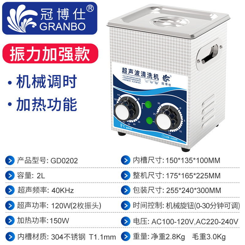 冠博仕GD0202超聲波清洗機|2L/120W|機械定時調溫