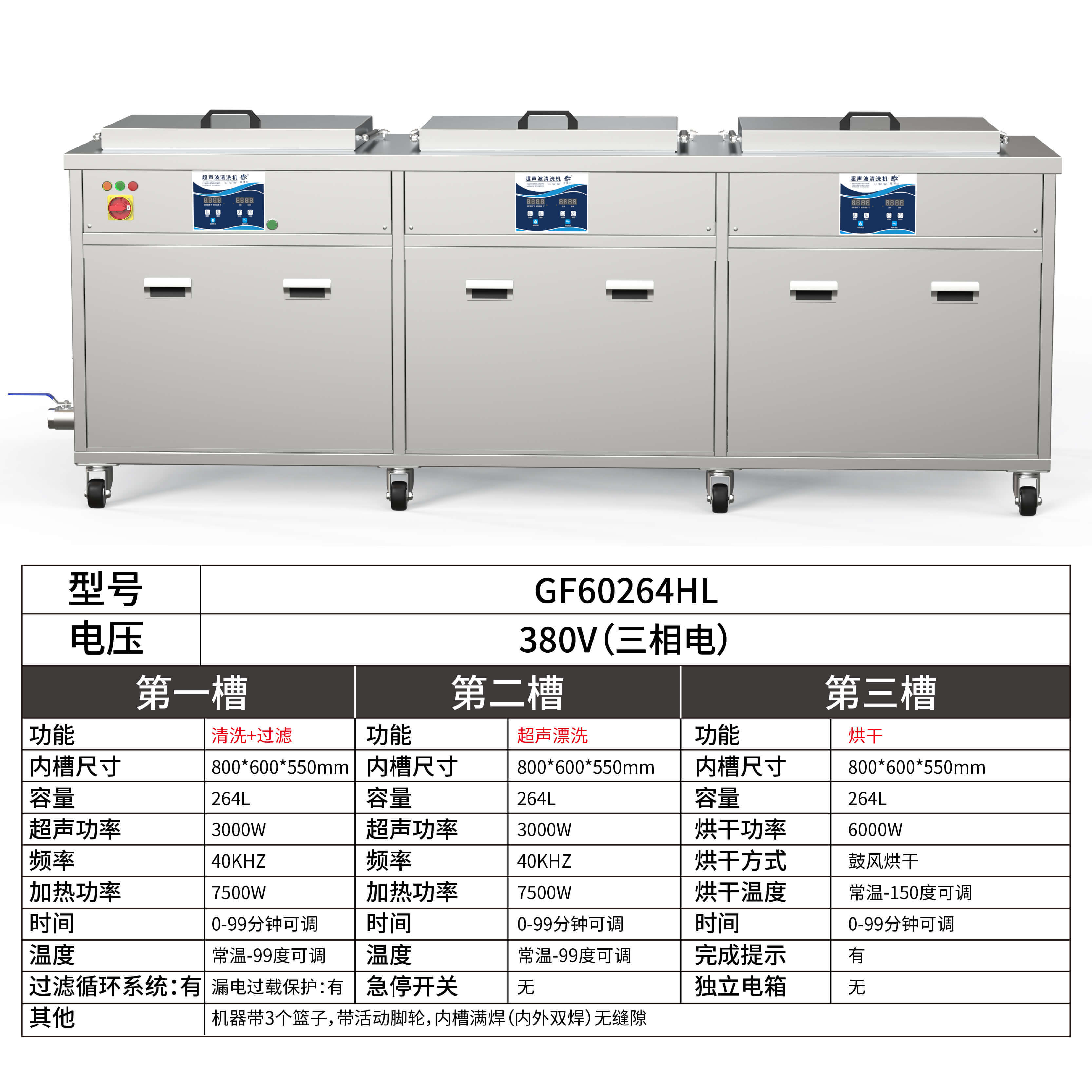 - 第三槽烘干功率:6000W