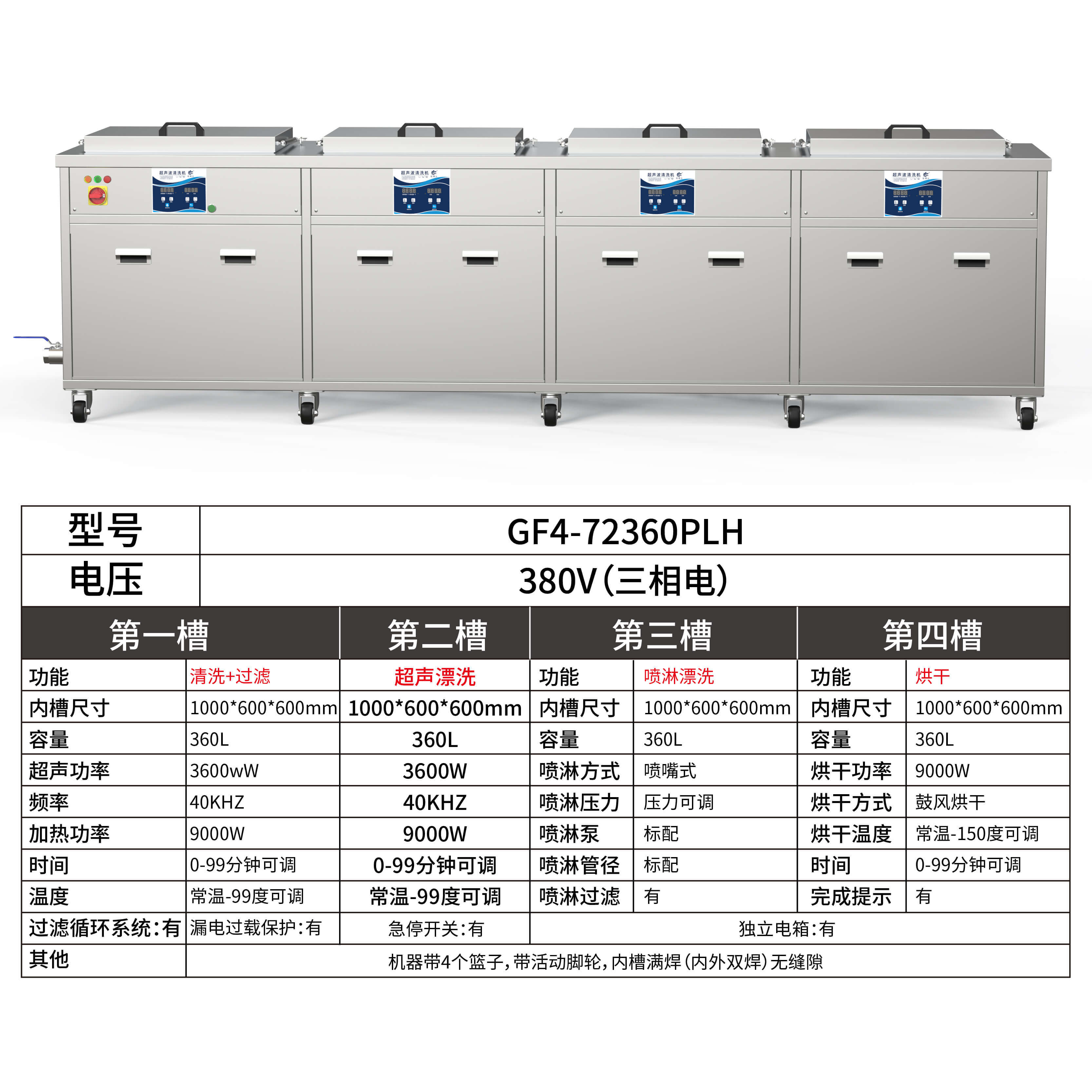 機器帶4個籃子,帶活動腳輪,內槽滿焊(內外雙焊)無縫隙