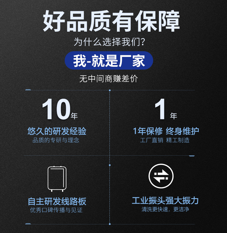 - 超聲波清洗機與清洗劑一起使用,清洗效果更佳!