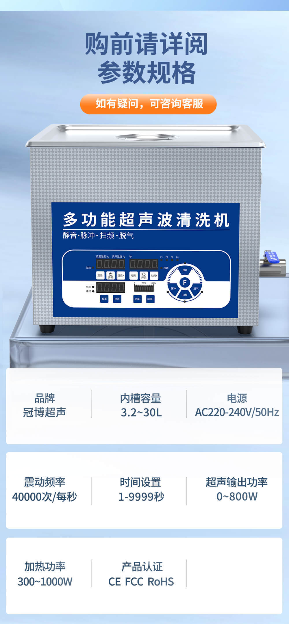 - 自主控制功能:具備功率可調、溫度可調、時間可調等功能,滿足不同物品的清洗要求。