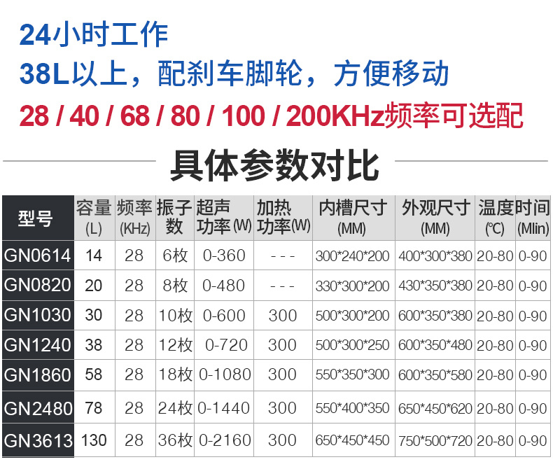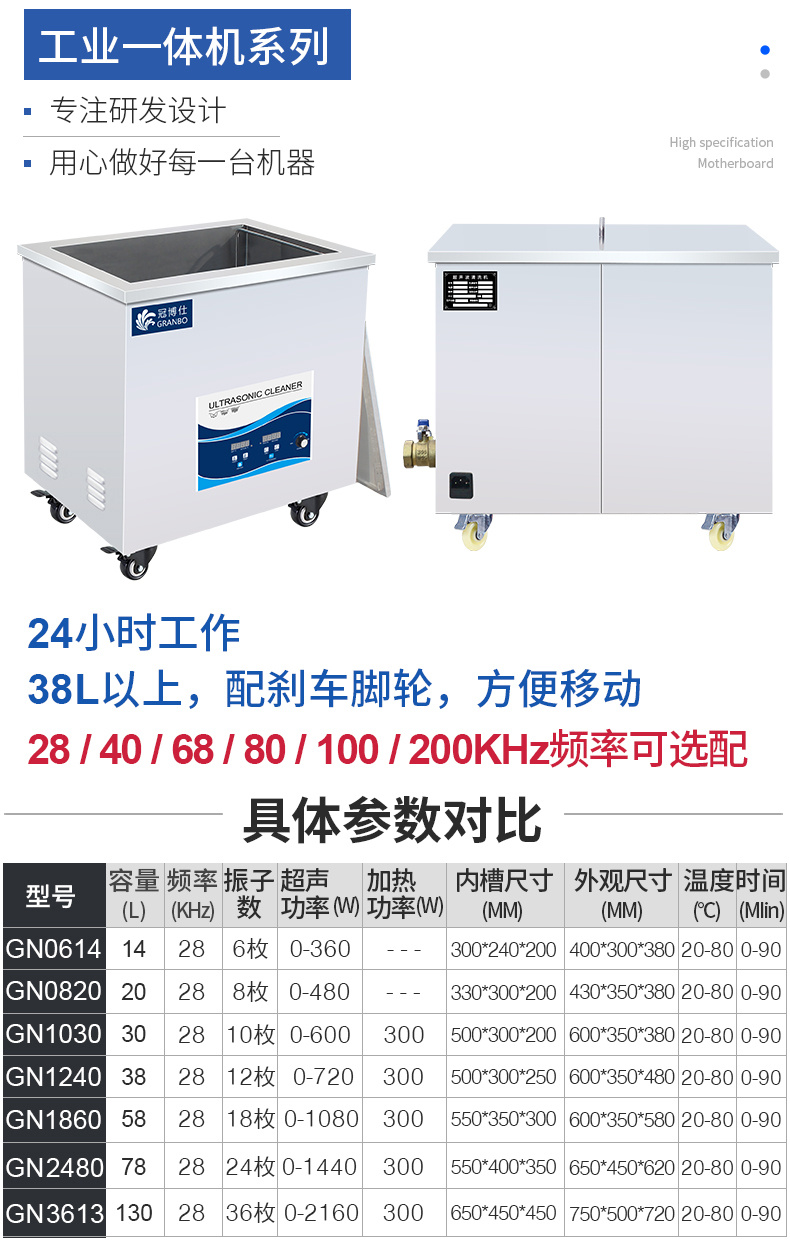 冠博仕GN2480超聲波清洗機|78L/1440W|工業一體機 功率可調 它激板