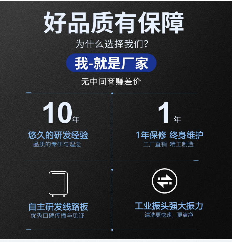 • 工業(yè)換能器: 采用工業(yè)震頭,力度強(qiáng)勁效果佳,可24小時(shí)工作;