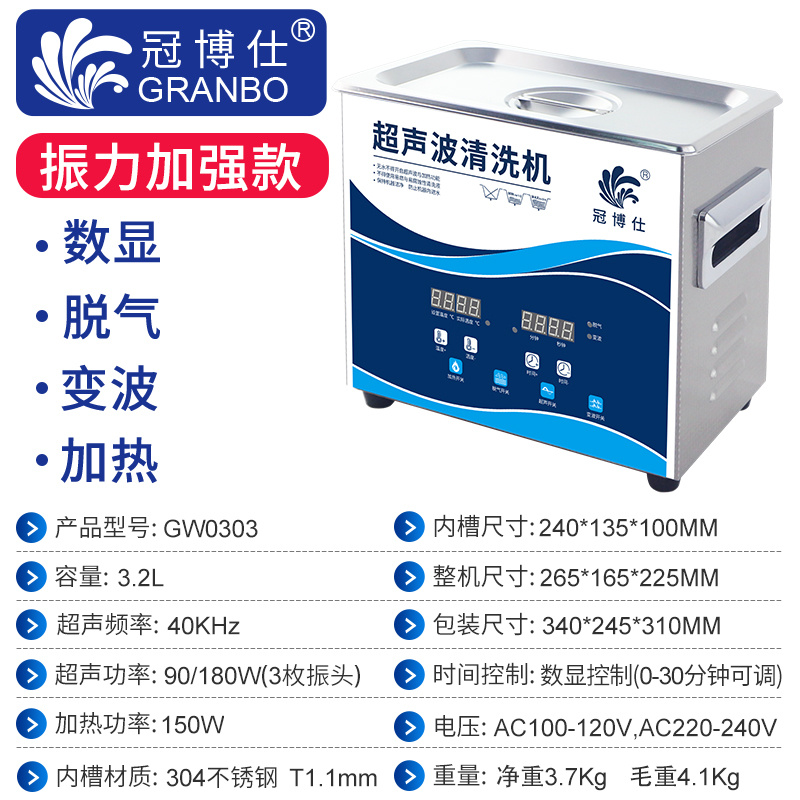 冠博仕GW0303超聲波清洗機|3.2L/180W|變波脫氣帶加熱