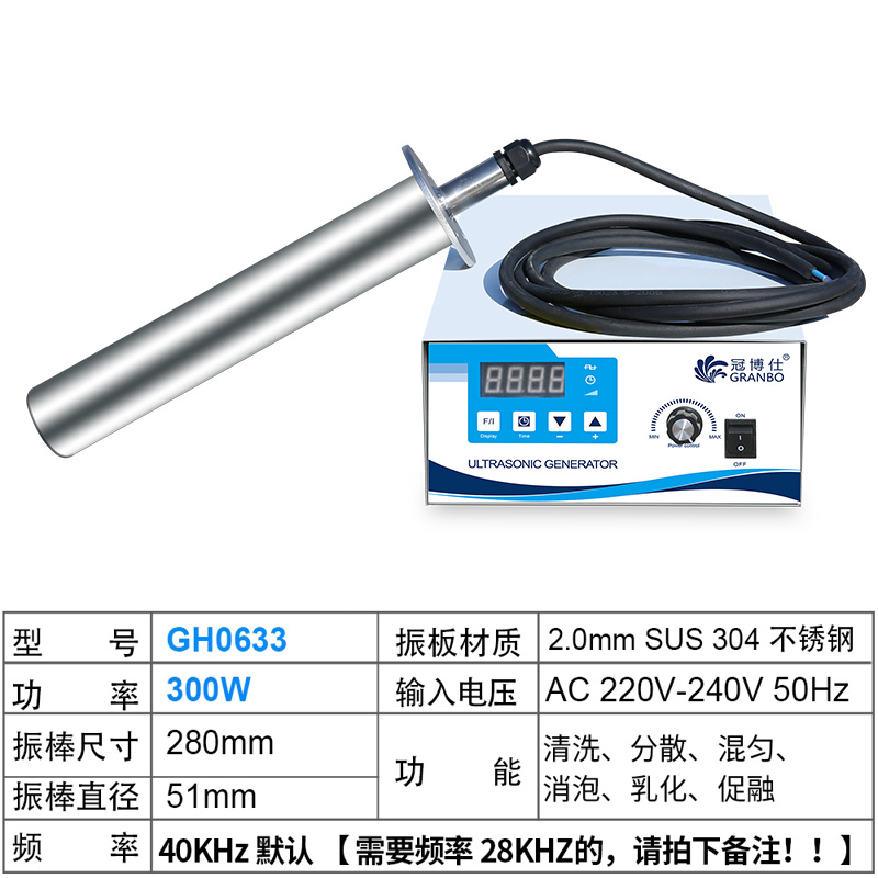冠博仕GH0633超聲波振棒|280mm/300W |清洗 乳化 分散 混勻 促融 支持定制