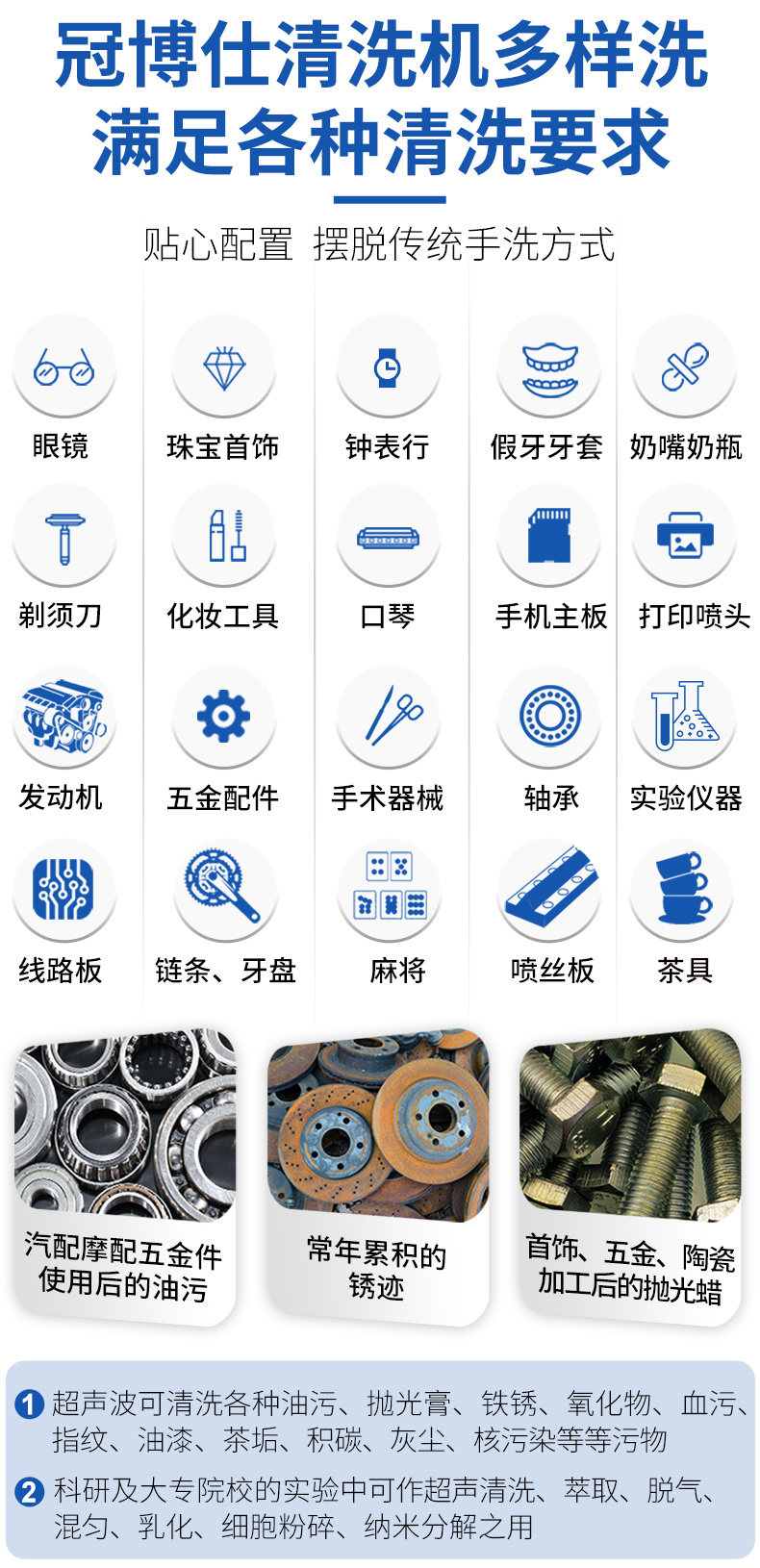 - 超聲波清洗機與清洗劑一起使用,清洗效果更佳!